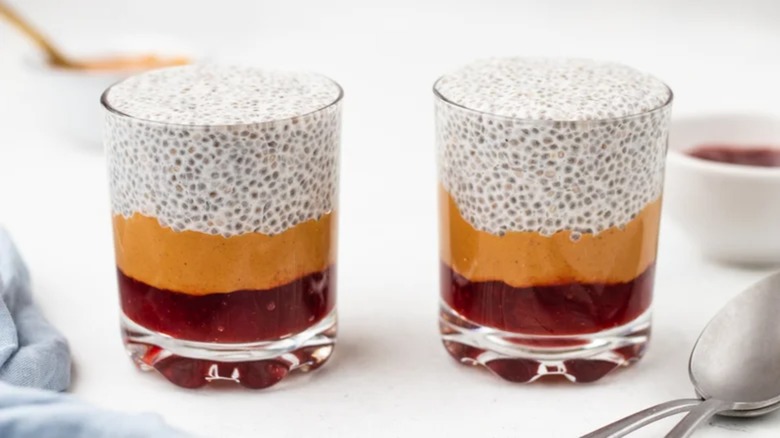 You already know how good peanut butter and jelly can taste together. However, did you know that there are other ways to enjoy these two classic ingredients that don't involve sandwiching them between two slices of bread? One idea that you'll surely want to try is this recipe for PB&J chia seed pudding. The simple-to-make recipe requires only six ingredients and calls for layering the ingredients in individual-sized cups or jars. Some strawberry jam goes first, followed by a layer of cream peanut butter, and then finally a layer of chia seed pudding (which is made with coconut milk chia seeds, maple syrup, and vanilla extract). The addition of the chia seed pudding to this classic flavor combination will leave guests craving more. Between the lightly sweet flavor and the texture added by the chia seeds, it truly is a delight.