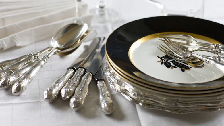 To prolong the life of your silverware, it's important to take some extra measures when dishwashing. Give utensils a quick rinse first if they've been in contact with acidic foods or fatty foods like fish or eggs, all of which can degrade the surface. Similarly, use acid-free detergent to avoid wearing the silver down. Just like with the cast-iron cookware, don't wash it in the same load as any other metals, because they can react with one another, causing staining, discoloration, and rust. Those crystal glasses can also contribute to tarnishing, so it's best to keep them in a separate load. With a little care, you can enjoy your cookware and serveware more often without adding to your to-do list.