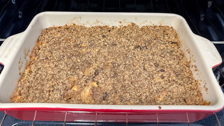 - Spoon the streusel mixture evenly over the top of the matzo mixture.
