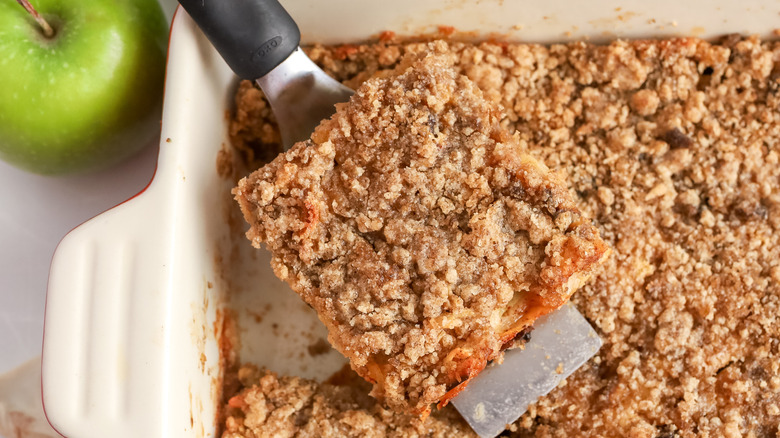 Featuring crumbled matzo sheets and a streusel topping made with almond flour, this apple matzo kugel is the perfect dessert for a Passover Seder.