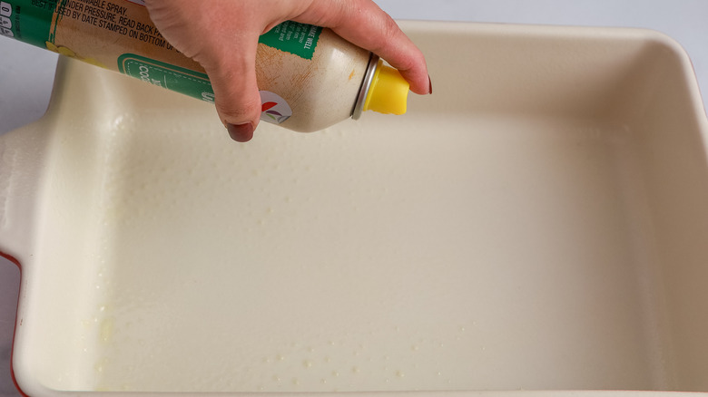 - Grease a 13x9-inch baking dish with nonstick spray. Set aside.