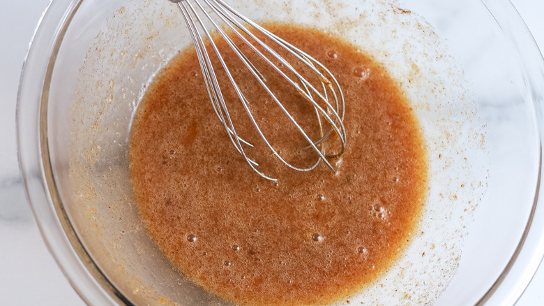 - Meanwhile, in a large bowl, whisk together the eggs, sugar, salt, cinnamon, and melted butter until combined.