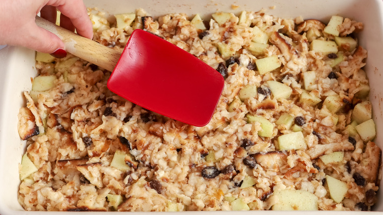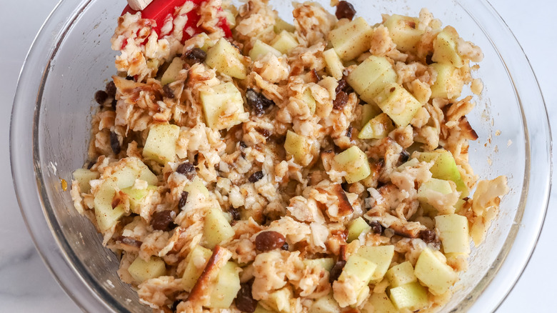 Step 6: Add the matzo, apples, and raisins to the bowl