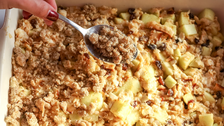 This apple matzo kugel recipe from Jessica Morone takes the essence of classic kugel and gives it a Passover-friendly spin, using softened matzo instead of noodles. The combination of sweet cinnamon-spiced apples, raisins, and a crunchy almond flour streusel makes this dish both comforting and festive. It's lightly crisp on top, soft and tender inside, and bursting with familiar holiday flavors. Best of all, it's easy to make and uses simple pantry staples that follow Passover dietary guidelines. If you're looking for a holiday dish that's both comforting and crowd-pleasing, you will definitely love this apple matzo kugel.