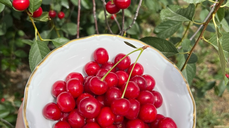 Fresh ingredients are the key to a stunningly good caprese — the fresher the better — regardless of which fruit you decide to put center-stage. While you can make a decent caprese with ripe tomatoes (or in this case, cherries) from your favorite supermarket, you'll usually find those freshly picked and brought to your local farmer's market to be superior in freshness and texture than their grocery store counterparts, giving you an unforgettable edge in the flavor department.