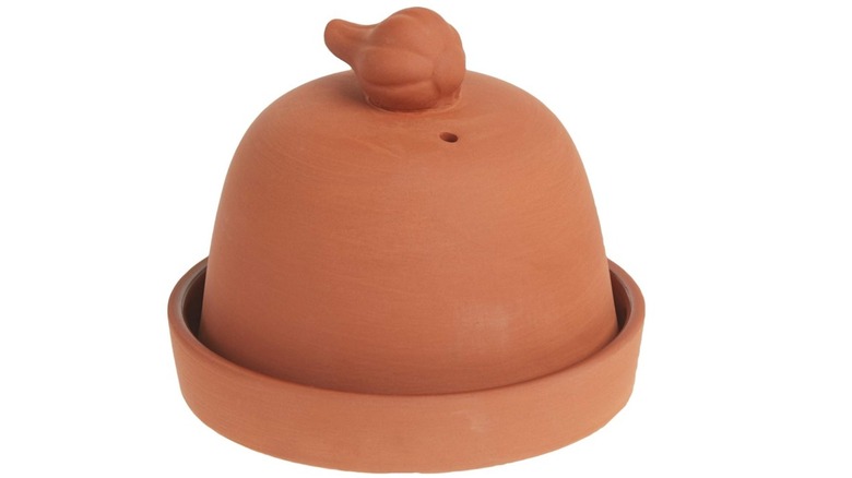 If you've never tried baked garlic, then you've been missing out. Roasting the garlic mellows its flavor and brings out caramel and sweet notes. The garlic tastes great spread on bread, mixed in with your favorite sauce or mashed potato recipe, or even stirred with cream cheese and other herbs and spread on a bagel. If your mouth is watering considering all of these possibilities, then you'll want to take a look at the Norpro garlic baker. The little terra cotta baker is the optimal size for roasting a whole head of garlic. It features a dome-shaped lid with a steam vent. You can even use the baker to store your fresh garlic heads.
