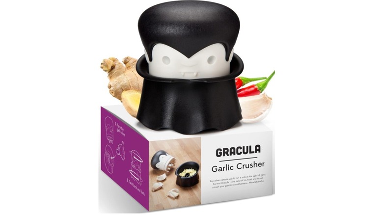 While folklore may lead you to believe that garlic and vampires don't mix, the Ototo Gracula garlic crusher may convince you otherwise. This cute, vampire-shaped tool makes it easy to crush garlic. After peeling the clove, simply place it in the base (the vampire's body), and then place the head piece back in and twist it around a few times. Once you lift off the head, you'll reveal the collected crushed garlic that's ready to add to your garlic butter shrimp recipe or other favorites.
