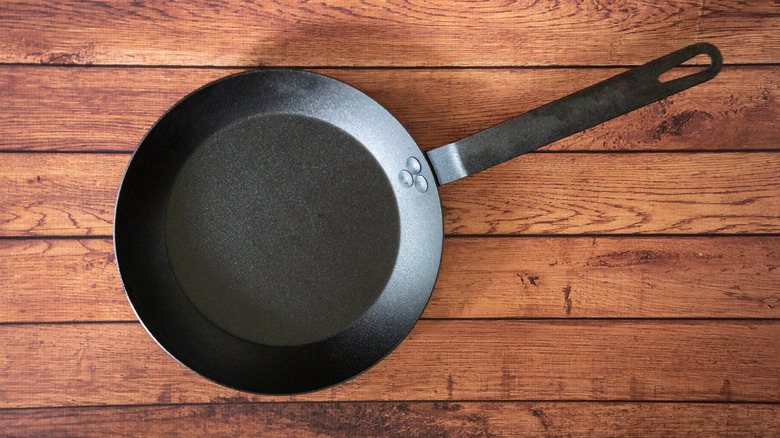 When Alton Brown tells you something is essential, you listen, even if it's for something as simple as what pan to use when frying an egg. Through his many cookbooks and seasons as host of "Good Eats," Brown has tackled the science of cooking and tested the best ways to do almost every imaginable kitchen task. This has given him many outspoken opinions, from his hatred of single-use kitchen equipment to his love for simple things like board scrapers. With that said, it turns out one of the great loves of his culinary life is, in fact, a pan. In his 2022 cookbook Good Eats: The Final Years, Brown revealed that after years of cooking fried eggs with different equipment, he finally settled on carbon steel pans as the superior option.