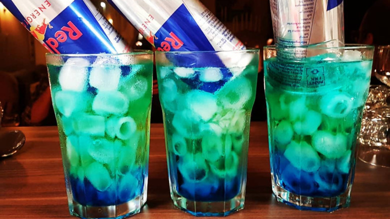 Despite its name, the Irish Trash Can isn't Irish at all. Ask for it at an Irish pub and you'll most likely get a funny look and a pint of Guinness instead. The name comes from the vibrant green hue the drink takes on once the Red Bull mixes with the blue curaçao. It's called a "trash can" because of the sheer number of ingredients in the drink. The Irish Trash Can has become synonymous with St. Patrick's Day, along with other Irish-inspired cocktails, though you might spot it at the bar down the street on a random Friday night, too.