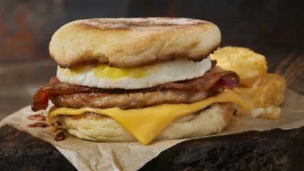 Sonic reigns as one of the only lingering drive-in fast food restaurant chains in America, complete with squawking order boxes and food trays perched on rolled-down windows. There are no inside eating spots at most Sonic locations, but you can certainly feast on all-day breakfast. Sonic restaurants are largely individually owned franchises, so it's possible to find regional breakfast foods in addition to the national breakfast entrees.