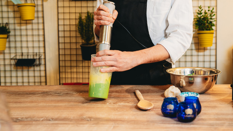 When it comes to guacamole, some people like it chunky while others prefer the Mexican dip to be smooth. Either way, when you make guacamole at home, it takes some effort on your part to smash the avocados into the preferred consistency. Typically, you might use a fork to smash the avocados into guacamole, but that's challenging if you want the dip to be silky smooth. That's when it's time to pull out your immersion blender to transform the ripe avocados into a smooth consistency in a matter of no time.