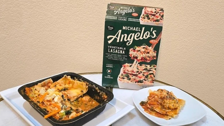 Family-size frozen entrees are the epitome of convenience. Simply nuke them at speed in the microwave or bake them in the oven for a crispier finish to get an effortless time-saving dinner on the table. From classic baked ziti and burritos to enchiladas and pad thai, the large variety and quantity of these dishes makes them perfect for feeding ravenous teens and adults alike. What's more, the best frozen meals make superb leftovers that can be refrigerated and eaten the next day. However, according to our taste test, there's one family-size frozen meal you should totally avoid at the grocery store: Michael Angelo's vegetable lasagna.