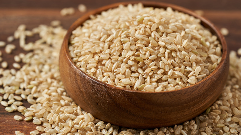 Rice is easy to prepare, especially if you have a rice cooker. The good news is that you can skip out on washing brown rice, but you should be soaking it if you have the time. You can think of rice as a blank canvas, and there are so many easy tricks to amp up the flavor of brown rice. Make sue to follow Gordon Ramsay's rule for when to season rice to set yourself up for success in the kitchen. Keep in mind that brown rice doesn't last as long as other rices, so be sure to not buy more brown rice than you'll be able to eat in about half a year, unless you store the grains in the freezer.
