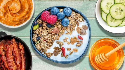 Whether you choose full-fat Greek yogurt or like to go with the fat-free version (or anything in between), we've got you covered when it comes to toppings for your yogurt bowl. We've included both sweet and savory options here to appeal to people who like to start their days with something salty or something sweet. And hey, who says you can't switch it up every day? Greek yogurt provides such a neutral backdrop for breakfast that you can get creative with your toppings and switch them up on a daily basis. Whichever flavor route you choose to take, let these topping suggestions guide you to the delicious, healthy breakfast of your dreams.