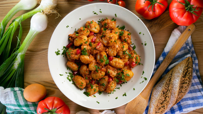 Although traditional pesto is beautiful in its simplicity, there are myriad ways to alter it to your liking, such as adding different herbs, playing with seasonings, and trying out various nuts. The thought of experimenting with olive oil alternatives might be horrifying to pesto purists, but there's no law against substituting sun-dried tomato-infused oil for the standard olive oil. Sun-dried tomatoes are often packaged in olive oil anyway, and this ingredient adds a deep, sweet, and jammy flavor to an otherwise simple pesto. Test it out with a traditional pesto recipe or try it in pesto rosso, an umami-rich take in which sun-dried tomatoes are substituted for basil.