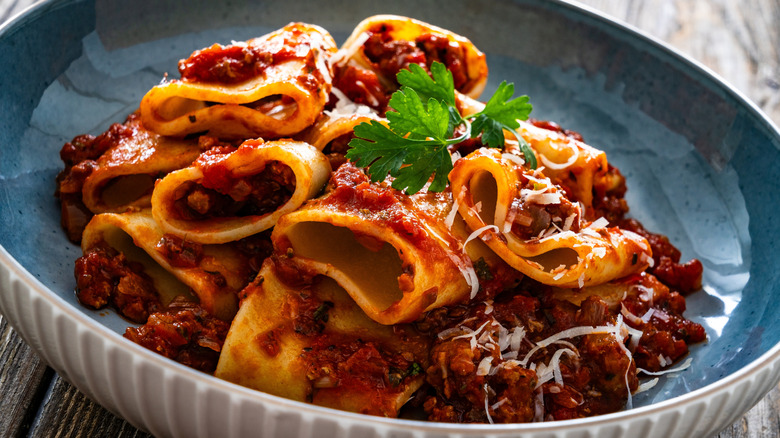 Bolognese is a great recipe to have in your culinary repertoire. This hearty comfort meal may contain more ingredients than you're used to, especially if you're a cooking novice. But, classic bolognese is actually very beginner-friendly. Once you've nailed the basics, it's easy to put your signature spin on it ... and speaking of recipe tweaks, bolognese sauce is way better with sun-dried tomatoes. Traditional bolognese already utilizes tomato paste for rich flavor, so the addition of sun-dried tomatoes doesn't veer off in a totally new direction. However, it does add an enticing layer of complexity and richness to the dish.