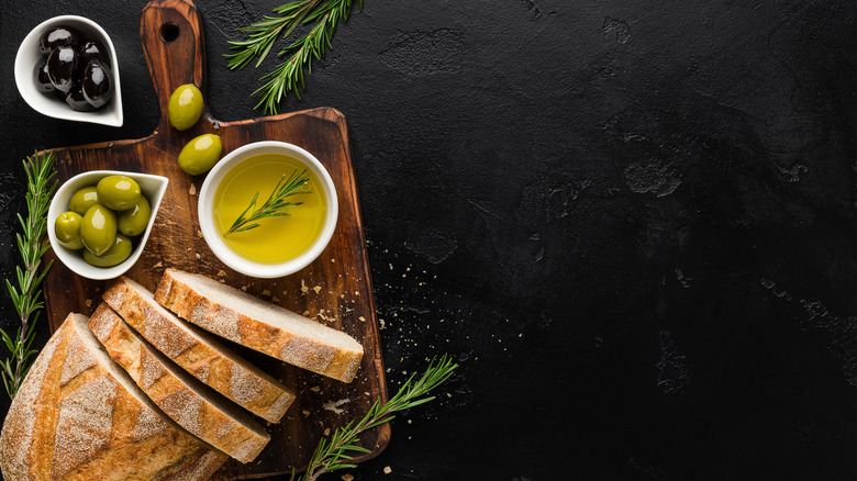Dipping a hearty chunk of rustic, crusty bread in high-quality olive oil is one of life's greatest simple pleasures. It's a common practice at restaurants, especially Italian joints, but it's also a super easy and cost-effective way to elevate the home dining experience and impress friends and family. There's something innately satisfying in gliding a crisp-on-the-outside, soft-on-the-inside piece of bread across a shallow pool of olive oil, hesitating a moment as the bread soaks it up, then relishing the soothing and familiar medley of flavors and textures that dance across the tongue.