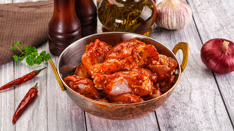 Store-bought marinades may be easy to use, but they're often loaded with unsavory ingredients, like added sugars, sodium, and preservatives. Luckily, there are seemingly limitless marinade recipes out there, many of which simply involve whisking together a couple of ingredients in a bowl or shaking them up in a jar. Marinades are a fantastic way to infuse everything, from rib eye and chicken thighs to pork chops, with flavor. In some cases, marinades can even help make the meat more tender. Acids break down the protein in meat, so marinades containing citrus juices or vinegar can increase tenderness.