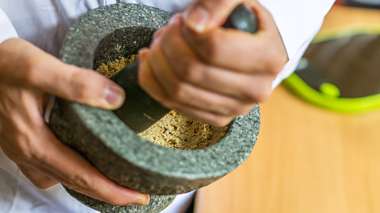 While we certainly still recommend investing in a spice grinder, a mortar and pestle can be a marvelous tool to have on hand when you need to grind