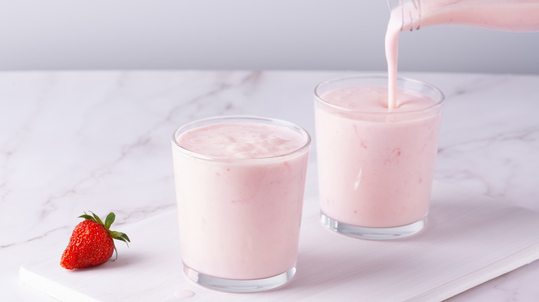 Alongside its rich texture, buttermilk boasts an equally rich flavor. Yet, beyond its dreamy creaminess, buttermilk has a tart twang that renders itself slightly unpleasant to drink. Fortunately, the drink can be made more palatable by neutralizing this acidity. For example, mixing the drink with something sweet can offset some of its mouth-puckering tang. Anything from a drizzle of honey to agave nectar or a flavored syrup can balance flavors, much like stirring in a ripe fruit puree — perhaps, mango — or a spoonful of berry jam. For extra depth, you can even add citrus zest, vanilla extract, or cocoa powder. Alternatively, buttermilk's sourness can be tamed by taking a savory approach. A pinch of salt (or a salty ingredient like miso) is all it takes to help detract from the beverage's acidity. For a tastier sip, we also suggest doctoring the drink with fresh herbs like mint or warm spices like cinnamon and nutmeg. Even a few chilis could improve the taste of buttermilk.
