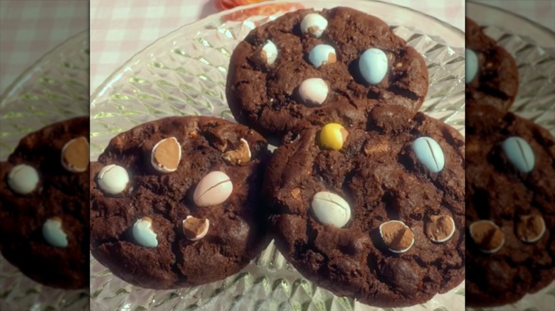 This special cookie, served warm, doesn't just come with any random Easter egg candy, but with candy-coated chocolate eggs reminiscent of the iconic Cadbury Mini Eggs — one of the treats that should be in every Easter basket, no questions asked. The chocolate eggs are used both in the batter and as a topping, making this cookie a true celebration of the popular Easter candy, packed inside a brownie-style treat with a rich chocolate flavor. Those who have already sampled the cookie report a melty, gooey texture that's perfected by the inclusion of people's favorite spring-time candy.