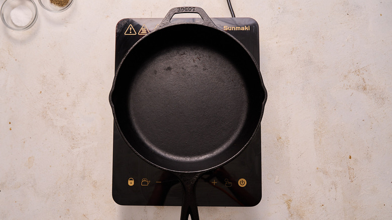 Allow the butter to melt as the skillet heats, rotating the skillet so that it is evenly coated with butter.