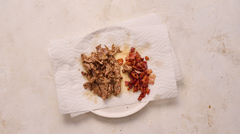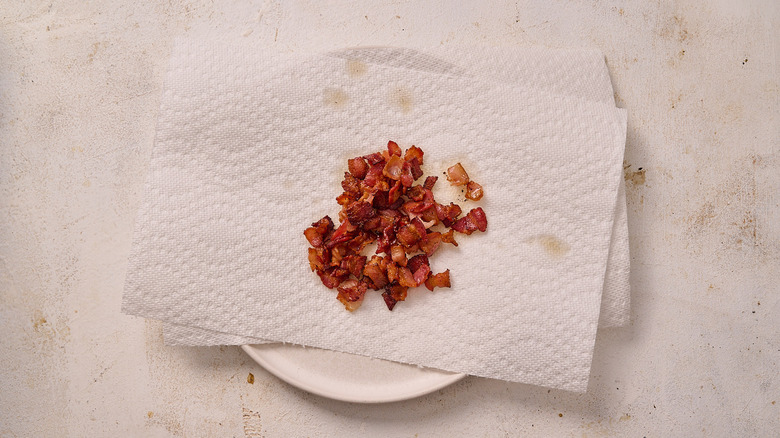- Remove and reserve the bacon on a paper towel-lined plate.