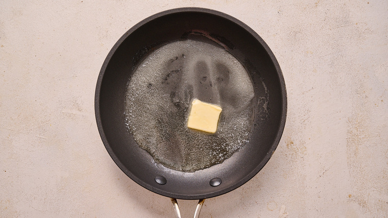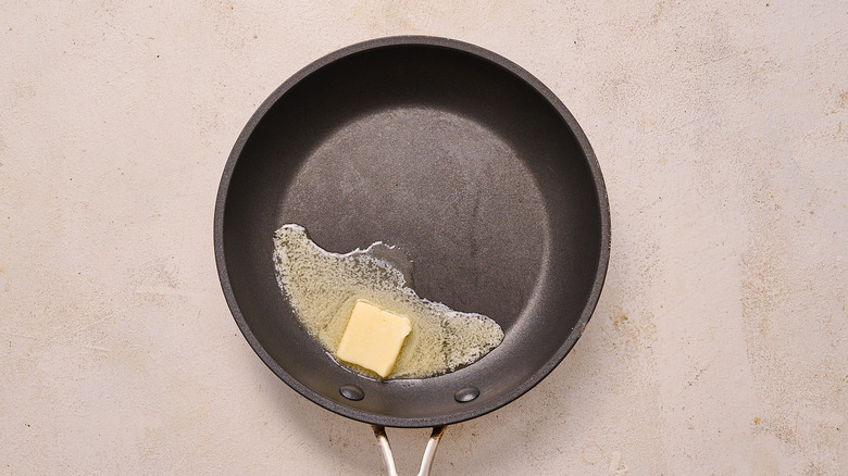 - Heat an 8-inch nonstick skillet over medium heat and add the butter.