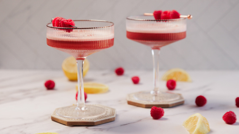 According to Ksenia Prints of At the Immigrant's Table, a Scotch sour is often perceived as a vintage, acidic, and masculine drink that tastes of peated whiskey and cigar smoke. But this drink can become so much more unique and flavorful with the addition of raspberry preserves, a raspberry liqueur, and a few luxurious garnishes. Because who doesn't want to feel like a starlet of the silver screen for a night?