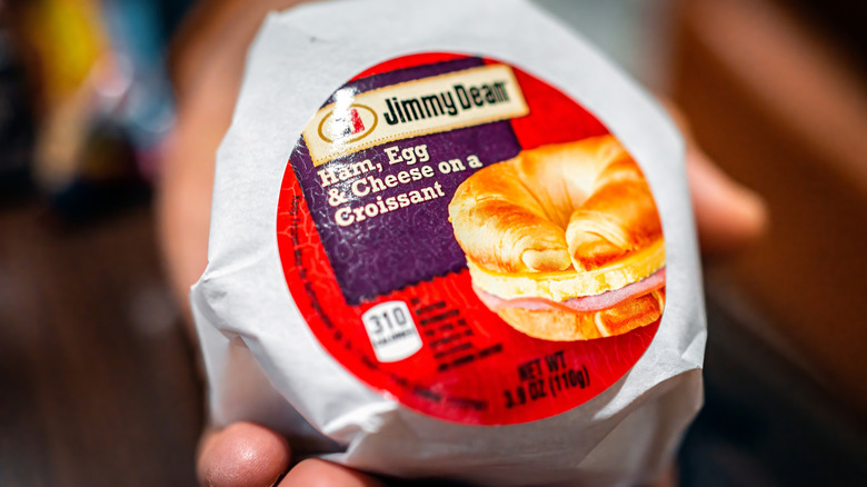 Nobody expects their store-bought frozen breakfast sandwiches to be made with the purest artisan ingredients, but when you grab a case of Jimmy Dean eats, you at least hope that the label reading "made with real cheese" is telling the truth. Restaurants can throw fancy cheeses and aioli on breakfast sandwiches all they want, but sometimes things are better the less refined they are. Many still prefer stopping for an Egg McMuffin or some other fast food breakfast sandwich, but you still want to at least know what you're eating. But what type of cheese does Jimmy Dean actually use in its breakfast sandwiches?