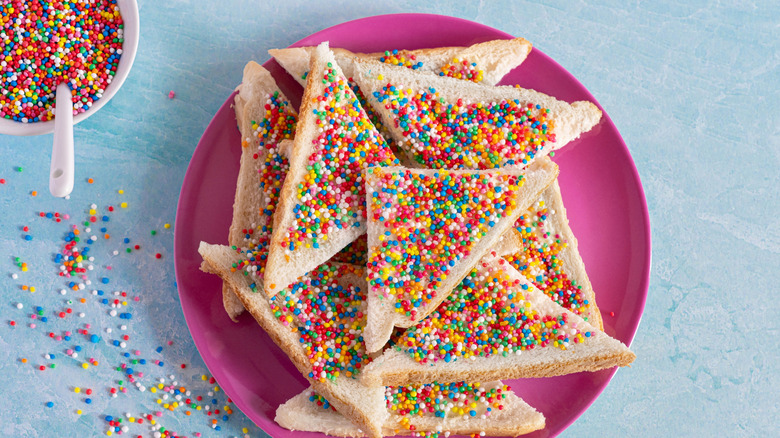 For the uninitiated, Australian fairy bread is made of white bread, butter, and 100s & 1000s — the Australian name for sprinkles. It's a quintessential staple at children's birthday parties, but it's not likely to be found in a bakery or at a supermarket.