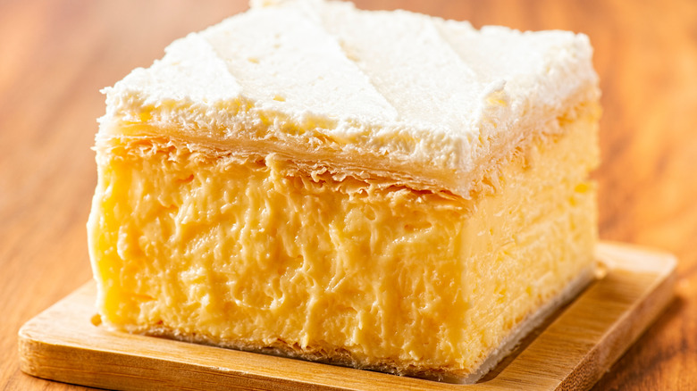 Vanilla slice, much like the aforementioned caramel slice, is a bakery staple. It's the kind of sweetness that hits your tongue and makes your teeth tingle. Most recipes call for custard powder, but you can even include instant pudding in your vanilla slice recipe to ensure structural integrity. Say goodbye to oozing custard, and hello to zero mess.