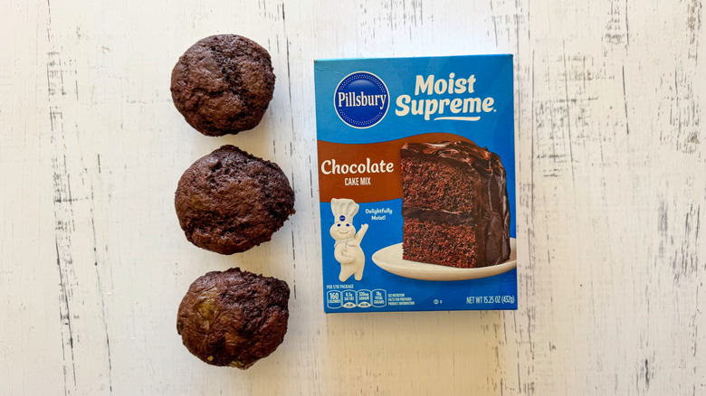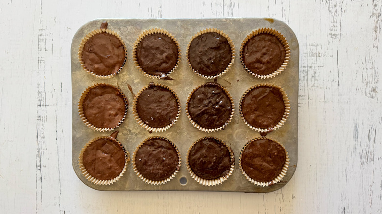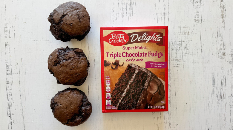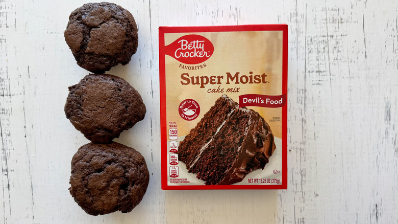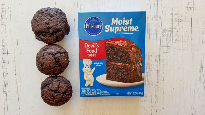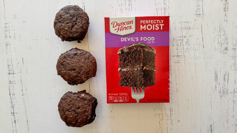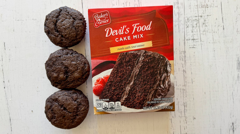 I've worked with tons of baking mixes over the years, and I sure know my way around a box of cake mix. In order to test these chocolate and devil's food cake mixes, I purchased a variety of brands from grocery stores located near me. Then, I prepared them according to the package directions by mixing in their add-ins — like melted butter, oil, eggs, milk, and/or water — and baking them. I opted to bake them in lined metal cupcake tins, but they could all be made in traditional round or square cake pans, too.