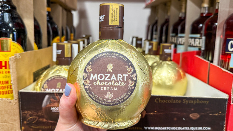 Those with a taste for the indulgent don't have to splurge at Costco. Clad in gold leaf, Mozart Chocolate Liqueur tastes like dessert in a bottle — smooth, creamy, and luxuriously rich. Made in Salzburg, Austria (yes, the hometown of Mozart himself), this liqueur blends Belgian chocolate, fresh cream, and high-quality spirits in a process that's more like crafting confectionery than traditional booze. The result is a velvety drink with deep cocoa flavor, hints of vanilla and caramel, and just the right amount of boozy warmth.