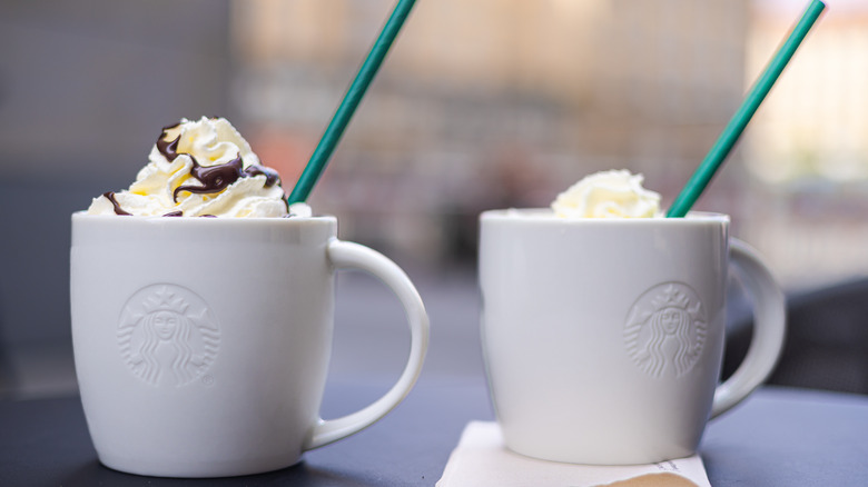 The good news is that neither chain charges extra for non-dairy milks, though you do have to order through the Caribou Coffee app to redeem the perk there, otherwise, it costs an extra dollar. Caribou's other customizations can also add up quickly. An extra shot will set you back $1.25 and cold foam costs $1, as do mix-ins like honey. You can add chocolate to your coffee for 65 cents or syrups for 50 cents. Drizzles, toppings, and whipped cream also cost $1 each.