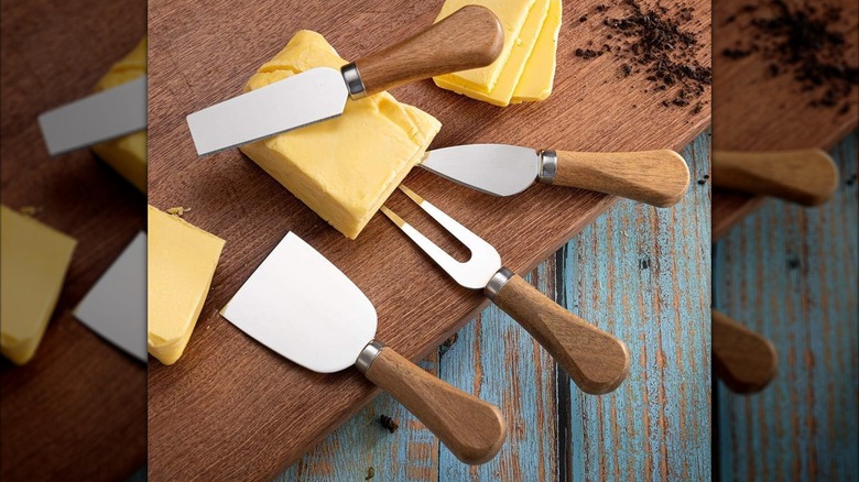 The longer tines are designed to help keep a block of cheese from sliding around as you cut it with a cheese knife. In addition to holding hard cheeses when slicing them, cheese forks can also be used with softer cheeses, such as blue cheese or feta cheese. You can use the longer tines to break a few crumbles off a larger chunk before putting them on your plate.