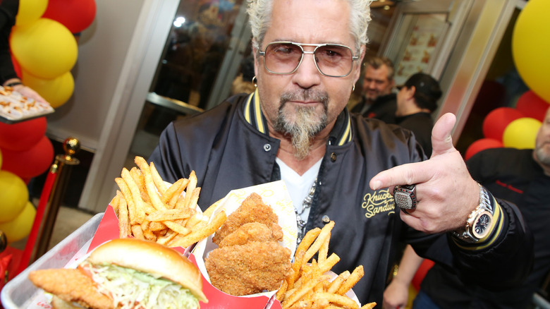 If the Gemini were any celebrity chef based on their zodiac sign, they'd have to be Guy Fieri — even if only for the simple fact that he is everywhere. From his TV series "Diners, Drive-Ins and Dives" and "Guy's Grocery Games" to his "Flavortown" catchphrase that he licenses out to restaurants and his frequent appearances at the Coachella Music Festival, Fieri is quite literally everywhere you look. As one of the most mainstream celebrity chefs in the U.S., with his iconic highlighted, spiky hair, Oakley sunglasses, and bowling shirts, it wouldn't be difficult to tell if he did have a twin — but it'd sure make a lot of sense if he did.
