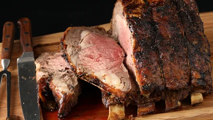 Known for an ultra-tender texture and rich flavor, the prime rib fittingly comes from the rib part of the cow. Because this area of the body doesn't get used much compared to other more muscular parts, the prime rib is a tender and sought-after cut. It being a fairly large cut of meat also means that it naturally has more moisture. There are some tricks to maximize that juiciness and get the most out of your prime rib. Try doing a reverse sear, a cooking method where you start by slow roasting and then finish with a high heat that locks in the juices and flavor with a caramelized crust.