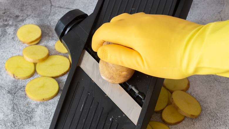 Stroll through any grocery store, and there are a plethora of top-notch potato chip brands to choose from in the snack aisle. Even so, sometimes it pays off to make a batch of potato chips at home, which gives you full control of the flavor, salt levels, and how they're cooked. Frying potato chips is an obvious technique, but baking them is a little less messy. The key to making sure every chip crisps evenly in the oven, however, is to use your mandoline slicer.