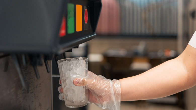 Costco's food court is famous for its pizza, but it also has an ice machine alongside its soda machine. That's where customers need to go to fill a container with ice for the long drive home. A 20-ounce soft drink is included in Costco's famous $1.50 hot dog deal, so customers can fill their cups and then fill other containers for their frozen foods.