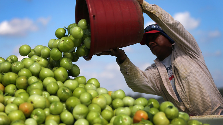 Tomatoes claim a colorful, ever-present chunk of space in America's grocery venues, regardless of the season. In one form or another, availability is simply expected. That begs the question: Where do all these tomatoes come from? Our southern neighbor, Mexico, does contribute a fair share of tomatoes to meet marketplace demand, contributing about 91% of fresh tomato imports in 2023, according to USDA trade numbers (via The Packer). But it's really the homegrown U.S. producers and farmers that keep us consistently well-stocked with fresh "maters," canned sauces, pastes, ketchups, tomato juices, and much more.