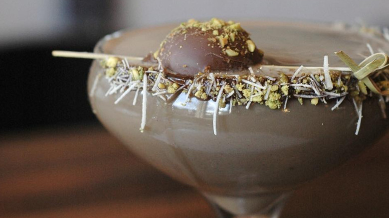 If you're not a pistachio fan, fear not. The same garnishing technique can be applied and used with other creamy spreads like Nutella, almond butter, chestnut spread, salted caramel, or marshmallow fluff. Layer up cocktail glasses with drizzles of chocolate sauce and a garnished rim of smooth peanut butter before adding in your blended iced cocktail or boozy milkshake. Regardless of the drink you decide to pour for yourself and your friends, these deliciously garnished libations can be served with homemade Dubai chocolate bars so you can enjoy decadent drinks and treats without stepping out your front door.
