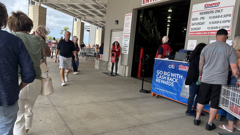 Between Costco and Sam's Club, there is a significant difference between the level of access anyone who walks into the store can have. At Sam's Club, you don't need to be a member to dine in the food court. Not only that, but when you walk into the store (at least at my location), there's no one checking membership cards. Costco, on the other hand, is a different story altogether. Up until April 8, 2024, Costco didn't require a membership in order to eat at its food court — like at Sam's Club, non-members could walk right in and enjoy a slice of pizza. Now, though, everyone must scan a card in order to enter the store, even if they just want a hot dog.