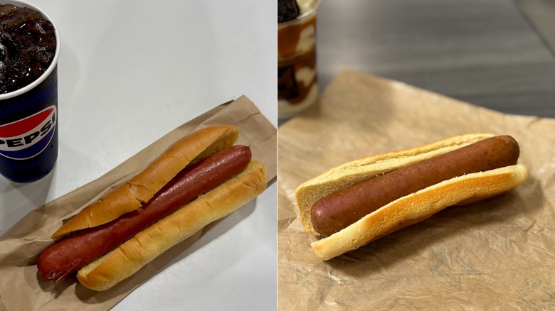Costco's hot dog, on the other hand, was a nice shade of reddish-brown with a better snap of the casing. The bun was also more substantial, perhaps making it clear where your extra pennies are going. The flavor checks out, too, and with condiments, it's even better. Simply put: Costco's hot dog meal is just superior.