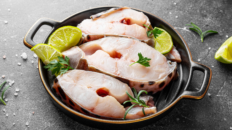 When you hear the word steak, you most likely think immediately of beef, but cows aren't the only animal that steaks come from. If you haven't already, consider picking up a few fish steaks the next time you find yourself in front of the fish counter at your grocery store. Varieties like tuna steaks, swordfish steaks, and salmon steaks are relatively common, but catfish steaks are also available and worth a try. Filets may be the standard when it comes to cooking catfish, but for a real treat look for catfish steaks.