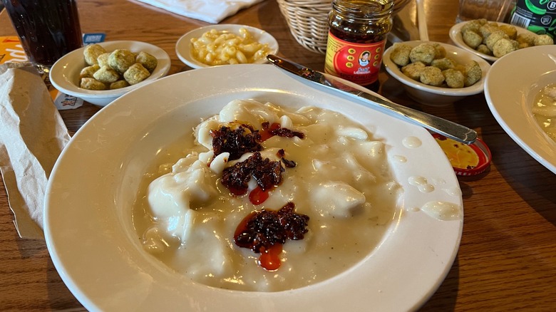 Without the supplement of a broth or worthwhile seasoning, these dumplings are more like filler than a satisfying side dish. It's not a problem in just one or two places, either, as many customers have repeated the same gripes across various Cracker Barrel locations. If what you're looking for is a soothing Southern-style side dish from the chain, you'd do well to stick with Cracker Barrel's mac and cheese or hashbrown casserole.