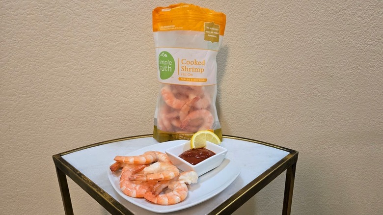 In addition to affordability, Simple Truth's cooked shrimp quality is high. The perfectly cooked crustaceans are tender, meaty, and juicy with just the right amount of bite. Simple Truth's shrimp have a mild, sweet flavor with a delicate creaminess that is not the least bit fishy. The 26-30 count per pound shrimp were the perfect size for a hearty shrimp cocktail appetizer.