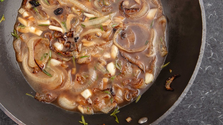 As their name suggests, these cooked onions take on a sweet, caramel flavor. All of that sharp onion flavor goes away once they're slow-cooked on the stove, which makes them more approachable to folks who aren't big fans of raw onions. The key to adding caramelized onions to your veggie burgers is to make sure that they're chopped up relatively finely and evenly distributed throughout the patty.