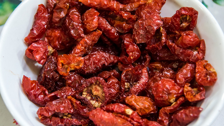 Tomatoes are very wet and tend to get gluey and soft when you stick them in a veggie burger. If you want to both capture that same sweet flavor and heighten your patty's umami profile, consider reaching for sun-dried tomatoes instead. These little morsels have such a complex flavor and will elevate almost any kind of veggie burger, whether you're working with something chickpea-based or a patty predominately with rice and veggies.