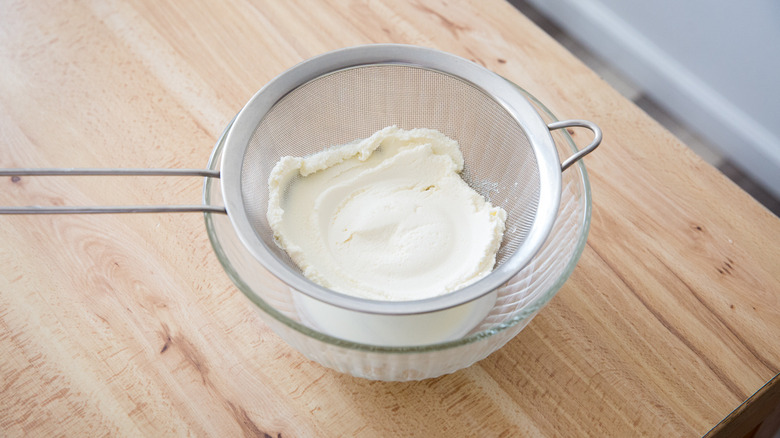 We know making desserts from scratch is more time-consuming than buying them ready-made, but there's one important step you shouldn't skip when making homemade cannoli: draining the ricotta beforehand. This will remove excess liquid from the ricotta so the filling isn't runny and the shells don't get soggy.